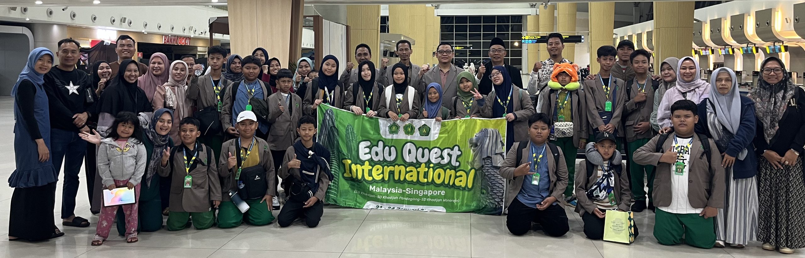 Edu Quest International Malaysia dan Singapura oleh anak-anak SD Khadijah mengukir sejarah yang indah di awal Tahun 2026. Bentuk kolaborasi antara SD Khadijah, SD Khadijah Wonorejo, dan SD Khadijah Pandigiling berhasil memberangkatkan 18 Murid untuk mencari inspirasi ke Malaysia dan Singapura. Perjalanan ini bukan sekadar kunjungan luar negeri, melainkan sebuah petualangan edukatif yang membuka wawasan, menumbuhkan keberanian, dan meninggalkan kenangan mendalam di hati setiap peserta. Selain berkesempatan menjelajah dan memahami budaya Malaysia dan Singapura, mereka juga berkesempatan belajar di IIMS (Islamic International School of Malaysia)dan Madrasah Wak Tanjung Al-Islamiyah Singapura.